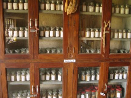 Dans la Banque de graine, comme dans un temple (d'ailleurs c'est un peu un temple), nous devons poser nos chaussures. Il n'est pas question de rapporter des graines non-invitées sous nos chaussures dans le bâtiment. Après avoir franchi la porte, plusieurs armoires s'étalent devant nous renfermant des centaines de variétés de plantes traditionnelles. Un tableau vient récapituler de manière très synthétique la collection. Rien que pour le riz, plus de 400 variétés ont été recensées et analysées. Chacune des variétés possèdent des qualités propres qui justifient à chaque fois un peu plus l'inutilité des OGM. Sur plus de 400 riz, imaginez un peu les formes, les couleurs, les qualités nutritionnelles, les goûts et surtout les différents sols auxquelles il sont adaptés ! Sols plus ou moins secs, humides, chauds, froids, argileux, filtrant, etc...