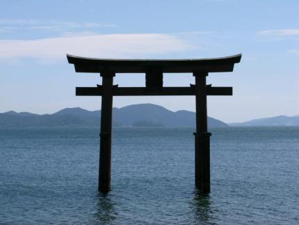 Une longue longue descente nous conduit sur les rives plus ou moins accessibles du lac Biwako. Nous pensions trouver une piste cyclable continue ; et bien nous avons mal pensé. Les riches de ce pays ont acheté des terrains au bord de l'eau. On a construit des hôtels de luxes, des discothèques, des garages à bateau et des clubs de scooter de mer. Nous nous retrouvons à pédaler sur une route très passante et étroite, pas du tout agréable. En plus le vent se lève brusquement et devient vite très violent. Nous avons du mal à rester couché sur les vélos. La tempête fini par soulever des tonnes de poussières et de sable. Malgré les lunettes et le tee-shirt remonté sur le nez, nous en avons plein les yeux et ça croustille quand on serre des dents. Nous décidons de nous arrêter dans une petite impasse qui donne sur une plage. Abrité par des maisons et quelques sapins, nous décidons de monter la tente, sous réserve qu'elle supporte les rafales de vent. Dans le pire des cas, il y a des toilettes à coté où nous pourrons toujours nous réfugier. Notre maison planté dans le sable et amarrée par de grosses pierres, un vieux monsieur vient nous voir et nous dit sans plaisanter : ''tento damé ! '' Et quand un vieux japonais dit ''damé'', il n'y a rien à faire, pas de négociation possible. Tente interdite devant chez lui, point final. C'est la première fois qu'un japonais nous fait ce coup là. A quelques centaines de mètres de nous un nuage doré de poussières éclairé par le soleil couchant, vole au dessus du lac. C'est à la fois très beau, magique, impressionnant et surtout peu rassurant. Nous plions la tente sous la surveillance du vieux qui s'est bien vite réfugié derrière les vitres de sa maison. Le soleil se couche et nous repartons en quête d'un endroit abrité pour passer la nuit. Nous demandons en plusieurs endroits. Toujours on nous déconseille de dormir dehors cette nuit, mais jamais on nous invite. Finalement, nous trouvons un sous bois de pins au bord du lac, mais le vent s'engouffre sous la pinède. Il est impossible de nous installer ici, en plus il y a le risque de se prendre une branche ou carrément un arbre sur la tête. Que faire ? il fait maintenant bien nuit, nous n'avons toujours pas mangé, nous ne savons pas où dormir et le vent souffle en tempête ! En désespoir de cause nous remontons sur les vélos, prêts à pédaler jusqu'à ce que la chance du voyageur nous vienne en aide. Nous ne faisons pas 3 km dans le noir que nous voyons sur notre gauche une petite lumière. Nous nous y dirigeons comme deux papillons de nuit et nous voici dans des WC publics, sans portes et trop petits pour que l'on puisse y dormir, mais suffisamment abrités pour que l'on puisse manger et nous laver. Nos estomacs remplis, c'est un problème de résolu. Reste à savoir où dormir ? En faisant le tour des toilettes, nous remarquons qu'il y a un grand étang à proximité et une bonne partie du plan d'eau est recouvert d'une épaisse roselière. En y regardant de plus près, Les phragmites se plies sous la force du vent, mais elles protègent une partie des berges sur un peu plus d'un mètre de hauteur. Sans plus tarder nous installons la tente à l'abris de la roselière en priant pour que le vent ne tourne pas. Les vélos n'ont pas arrêté de tomber, si bien qu'on a fini par les laisser couchés (ce qu'on aurait du faire dès le début) et nous n'avons pas fermé l'oeil de la nuit, passant notre temps à attendre la grosse rafale, celle qui déchirerait et ferait s'envoler notre abris de fortune. De temps en temps la toile de tente se gonflait jusqu'à arracher les sardines, les arceaux hyper tendus bougeaient dans tous les sens. Une nuit très riche en émotion mais finalement tout le monde à survécu, à part la bâche des vélos.